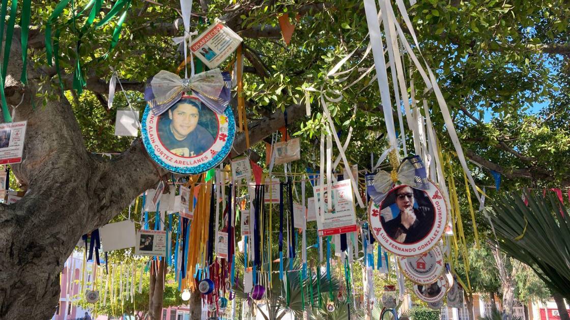 Cuelgan en el Árbol de la Vida en Mazatlán fotografías de personas desaparecidas