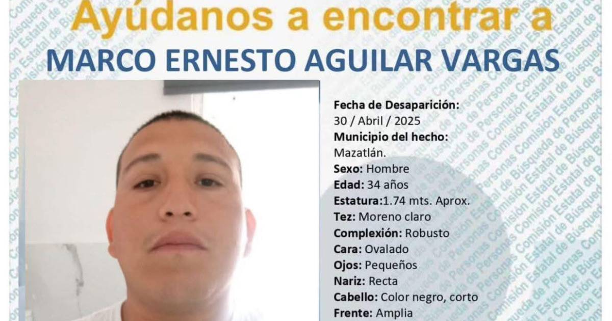 Marco Ernesto Aguilar Vargas es de complexión delgada, estatura aproximada de entre 1.75 y 1.80 metros, sin tatuajes y con una cicatriz de aproximadamente un centímetro y medio en el cachete derecho.