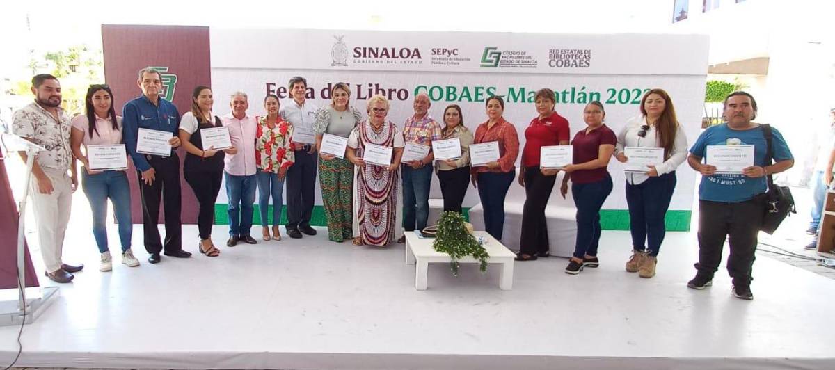 Luego los representantes de Cobaes, Yadira Osuna; Paola Osuna Burgos, Jefa del Departamento de Servicios Bibliotecarios; el delegado Académico, Jorge Luis Mendoza Guerrero y Samuel Noel González Sánchez, Delegado de Cultura, hicieron entrega de reconocimientos las instituciones y librerías que con sus stands contribuyeron a enriquecer el evento.