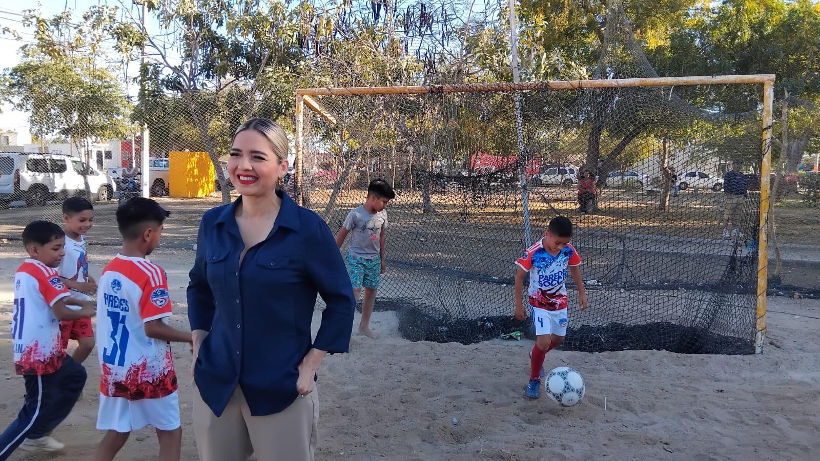 Dan banderazo a la rehabilitación de cancha de futbol rápido en Santa Fe, en Mazatlán