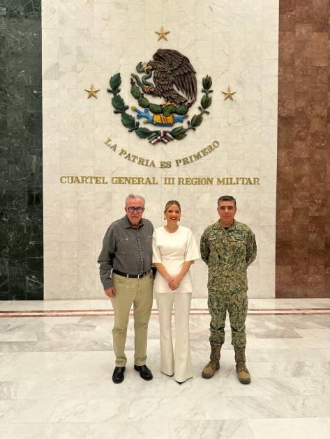 De acuerdo con un comunicado, durante su visita a Mazatlán el Gobernador Rubén Rocha Moya fue recibido por la Presidenta Municipal, Estrella Palacios Domínguez, y por el comandante de la Tercera Región Militar, General de División, Guillermo Briseño Lobera, como anfitrión.