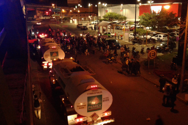 Durante la manifestación en Mazatlán, una mujer que estaba a bordo de un automóvil, detuvo la marcha cuando de la planta de Pemex salían al menos dos pipas con al parecer con combustible, por lo que sus conductores se detuvieron ya que la mujer, apoyada por los manifestantes, les impedía el paso.