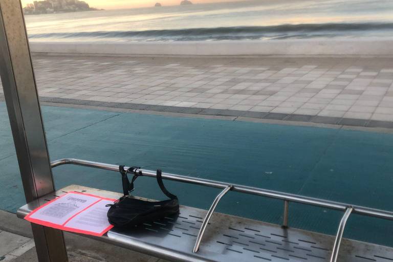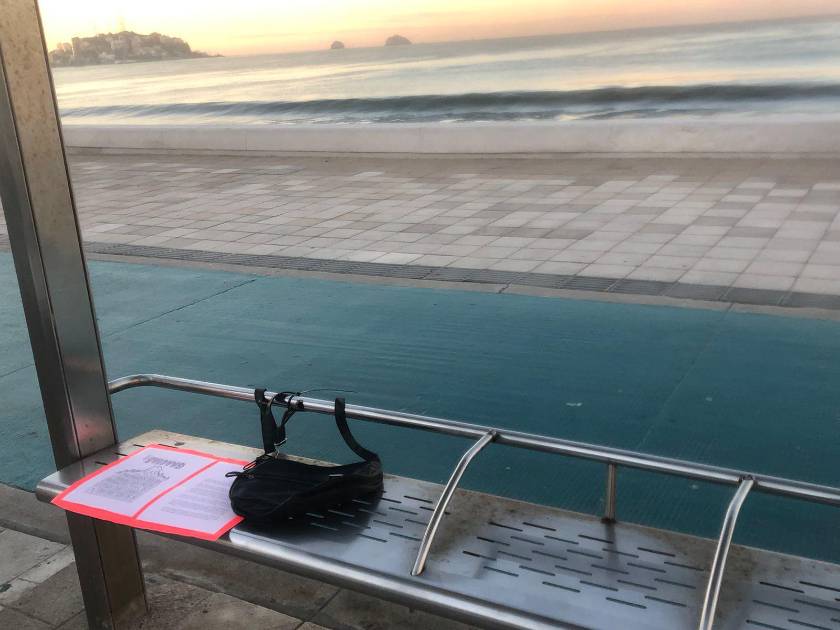 Dejan bolsos y mensajes en paradas de camiones de Mazatlán para llamar a denunciar la violencia contra mujeres