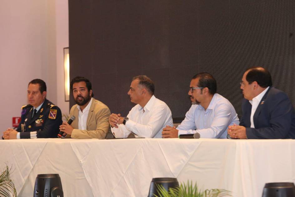 La conferencia de prensa también fue encabezada por Luno Suárez Guzmán, impulsor del proyecto del Parque Industrial Aeroespacial en Mazatlán, que dijo su primera fase concluirá el próximo año.