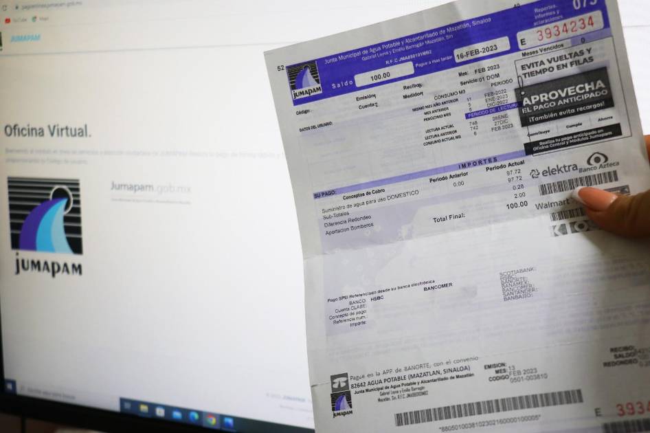 Añadió que después de más de 20 días de estar fuera del puerto regresó el miércoles 15 de febrero a su domicilio ya que estuvo en la Ciudad de México cuidando a un familiar enfermo y acudió a otro punto del país, por lo que su casa está sola, por eso no se utiliza tanto el agua y es excesivo el cobro que le hace la Junta Municipal de Agua Potable y Alcantarillado de Mazatlán.