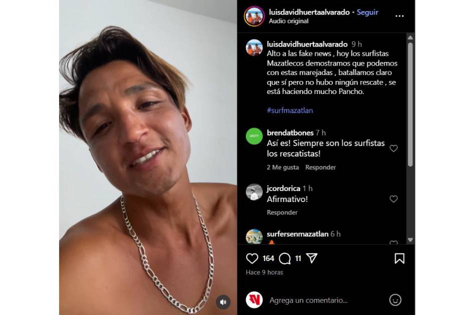 “Están sacando noticias falsas de que hubo rescates de surfistas y no hubo ni uno solo. Todos batallamos para salir, eran olas de hasta 12 pies, pero ninguno necesitó ayuda. No hubo absolutamente ningún rescate”, comentó.
