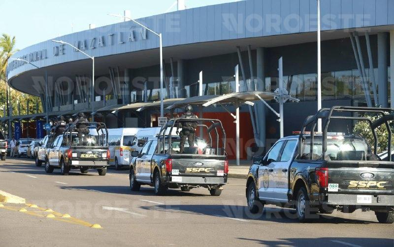 Decenas de elementos de la Secretaría de Seguridad y Protección Ciudadana, Guardia Nacional y de Protección Federal, del Ejército Mexicano, camionetas negras y blancas, además de una ambulancia, ya se encuentran en las inmediaciones del aeropuerto de Mazatlán.