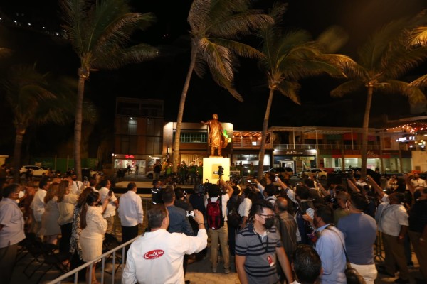 Tras la develación de la estatua, las notas de "El Corrido de Mazatlán", interpretadas por la banda sinaloense, inundaron el Paseo Olas Altas mientras la pirotecnia dio color al cielo mazatleco.