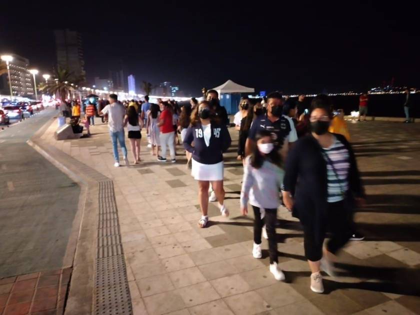 Aunque no se presentan grandes concentraciones de personas como anteriormente, pues aún se registra la pandemia del Covid-19, esta noche ya son miles de turistas y mazatlecos que disfrutan de este puerto, varios de ellos sin utilizar cubrebocas para prevenir el contagio del coronavirus y ninguna autoridad les pide que se lo pongan.