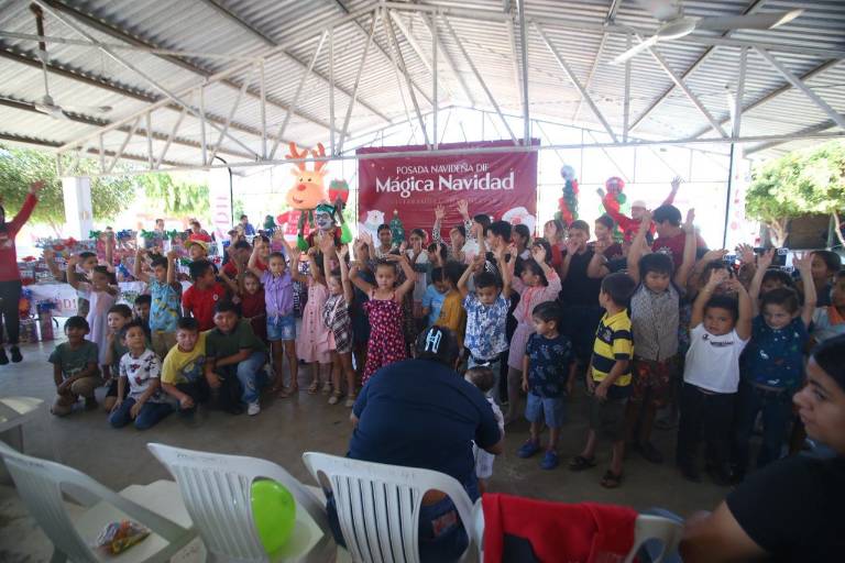 SIQUEROS, Mazatlán._ Familias de la sindicatura de Siqueros disfrutaron de una posada navideña en el cobertizo del lugar, este sábado 13 de diciembre.