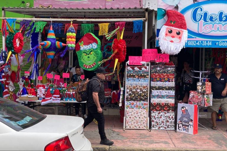 MAZATLÁN._ Tal y como se acostumbra en cada temporada decembrina, los puestos y negocios del Centro transformaron su atmósfera de trabajo con la venta de productos y artículos navideños, destacando las clásicas piñatas, los tradicionales dulces y los coloridos suéteres que se ponen de moda este mes.