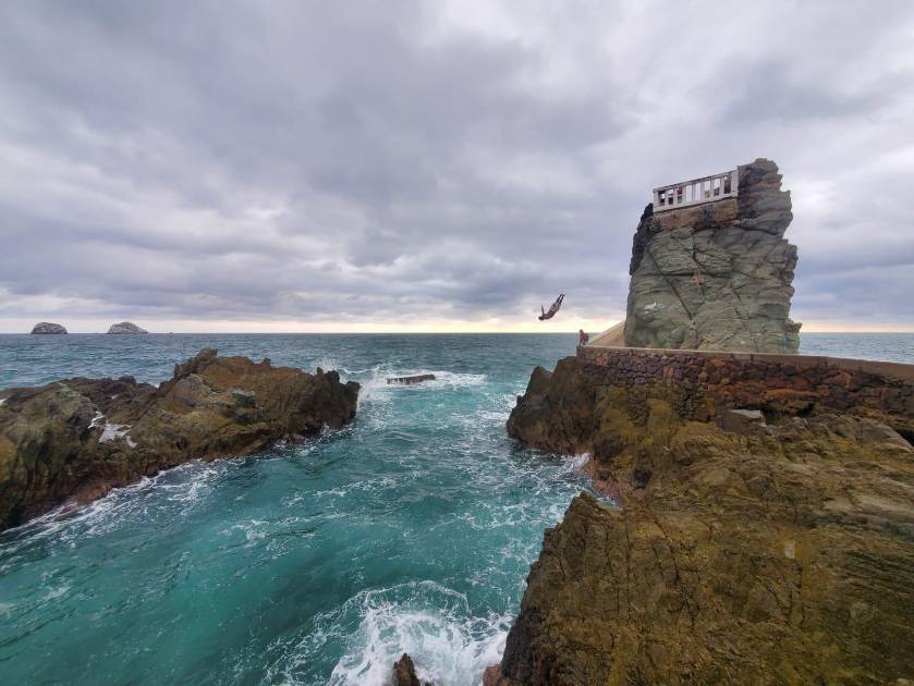 Es por eso que Francisco, el joven que fue el que se tardó en aventarse minutos antes, se toma su tiempo en cada clavado, aunque la gente lo entusiasme a que se lance rápido, él tiene que esperar, esperar a que el viento sea el más adecuado, que las olas sean las más adecuadas, todo tiene que ser perfecto, a la hora del salto.