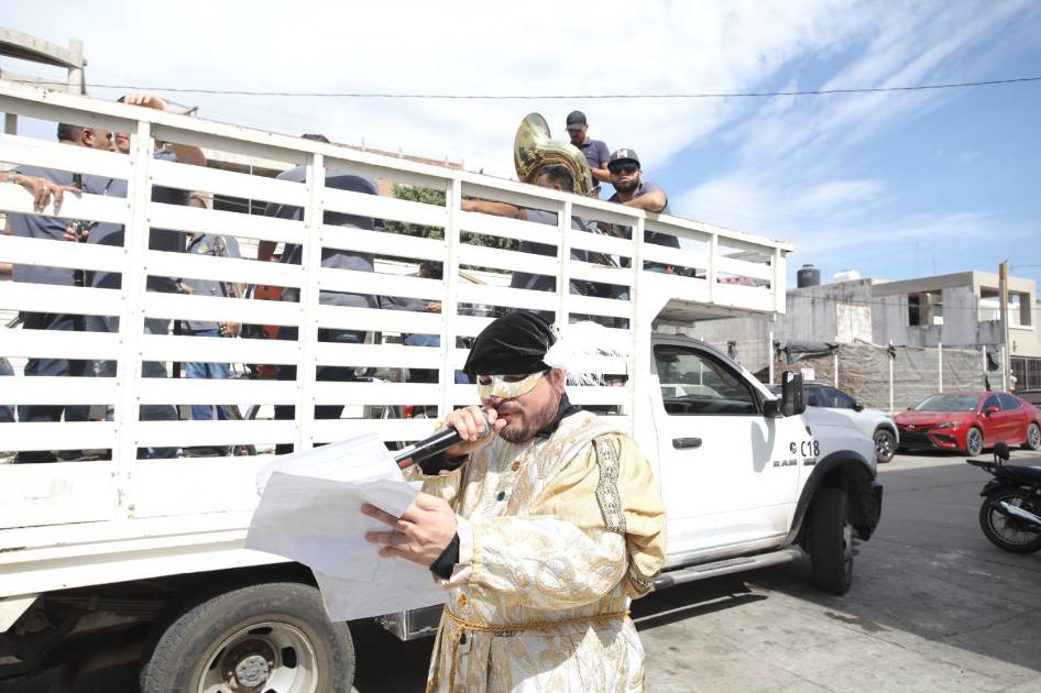 Los Bolcheviques se presentaron a las afueras de Noroeste para leer el edicto para la Quema del Mal Humor 2024, misma que fue anunciada al ritmo de “El Sinaloense” y “El Corrido de Mazatlán” que fueron interpretadas por la Banda Brisa de Mazatlán.