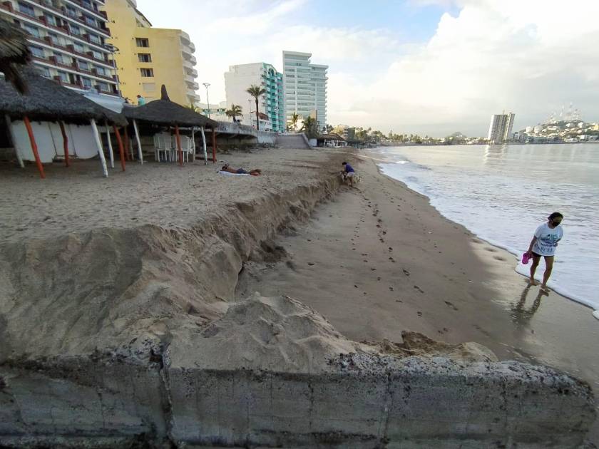 Por la Avenida del Mar, Zona Dorada y Cerritos se puede observar cómo el impacto de las olas arrastró hacia el mar la arena