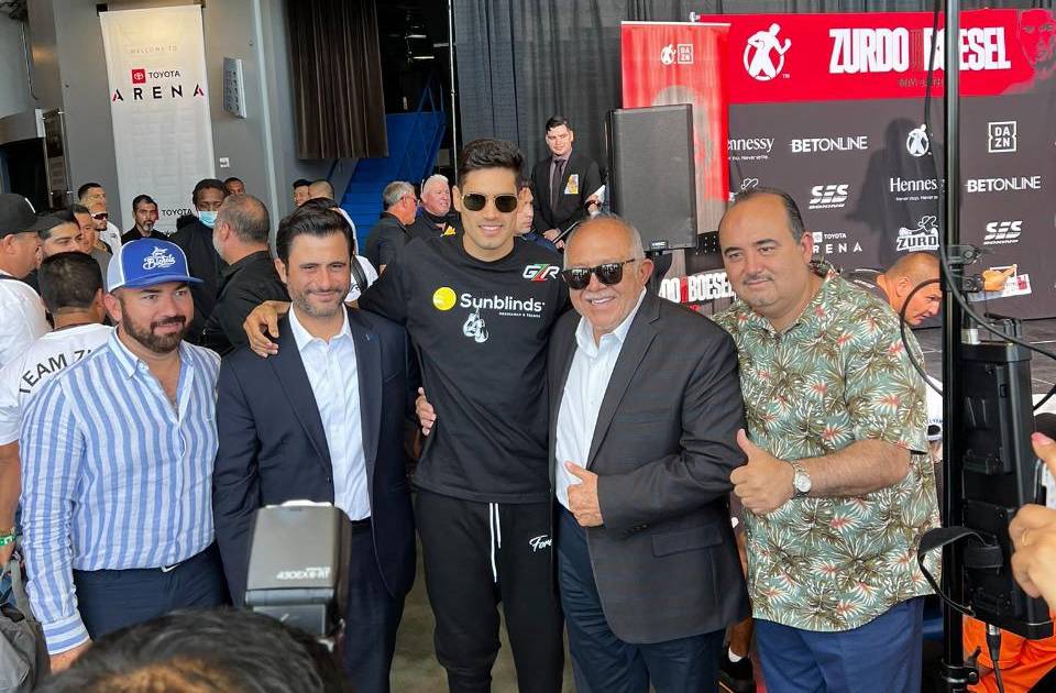 El Alcalde Luis Guillermo Benítez Torres y el director del Instituto de Cultura de Mazatlán, José Ángel Tostado Quevedo, estuvieron este viernes en Ontario, California, en la ceremonia de pesaje del mazatleco Gilberto “El Zurdo” Ramírez, quien combatirá este sábado contra el alemán Dominic Boesel.