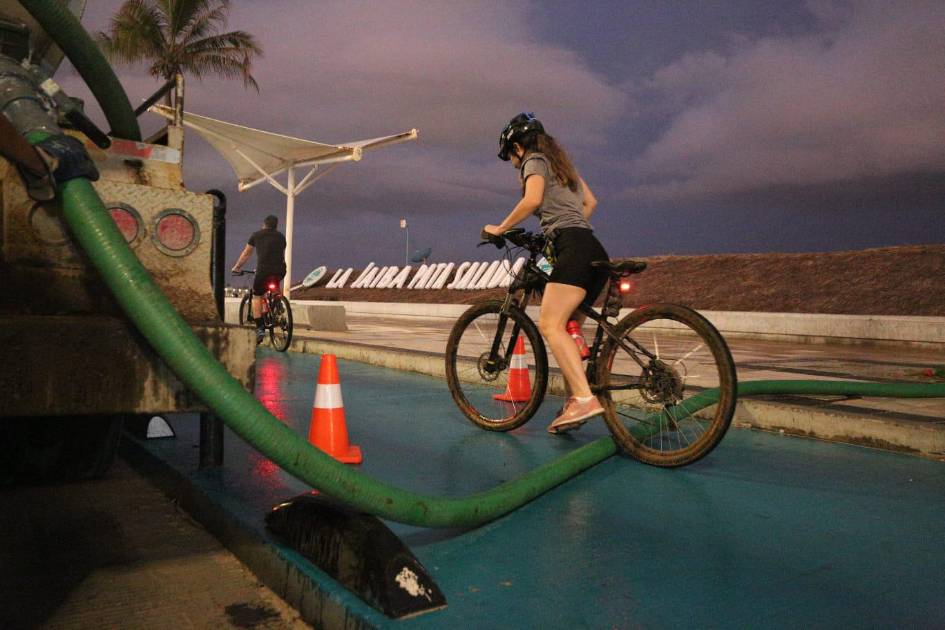 “Quienes hacemos uso de la ciclovía y la acera del malecón en las primeras horas de la mañana para ejercitarnos, nos encontramos con el desagradable obstáculo de los camiones que extraen los desechos fecales de los baños portátiles que utilizan las palapas que funcionan como restaurantes playeros a lo largo del malecón, para su trabajo los encargados de estos camiones atraviesan gruesas mangueras por encima de la ciclovía y la acera, lo que representa un riesgo para ciclistas, patinadores , corredores y caminantes que tenemos que saltar por encima de las mangueras”, criticó una ciudadana.