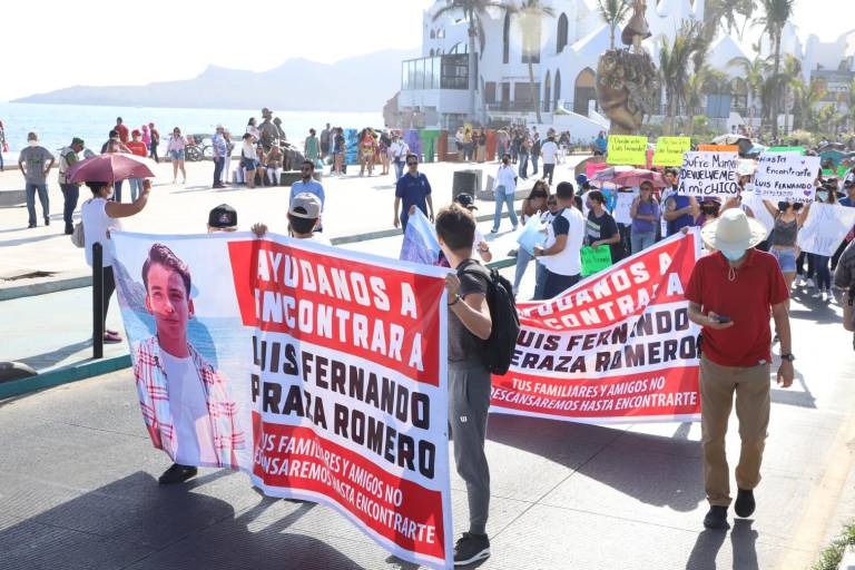 “Ayúdanos a encontrar a Luis Fernando Peraza Romero. Tus familiares y amigos no descansaremos hasta encontrarte”, se leía en una lona que portaban los cerca de 120 manifestantes.