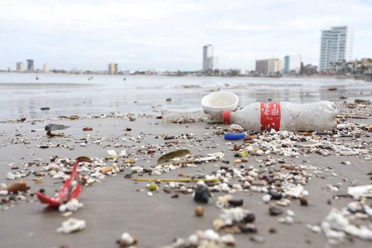 MAZATLÁN._ Pedazos de unicel que se confunden con conchas de playa, pelícanos que buscan comida entre los desechos y playas llenas de basura, es el panorama este lunes en la zona costera tras las lluvias generadas por el Huracán Enrique.