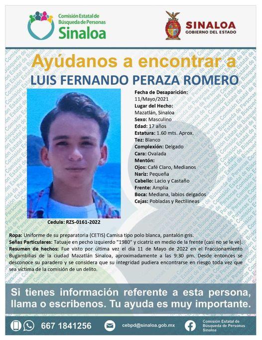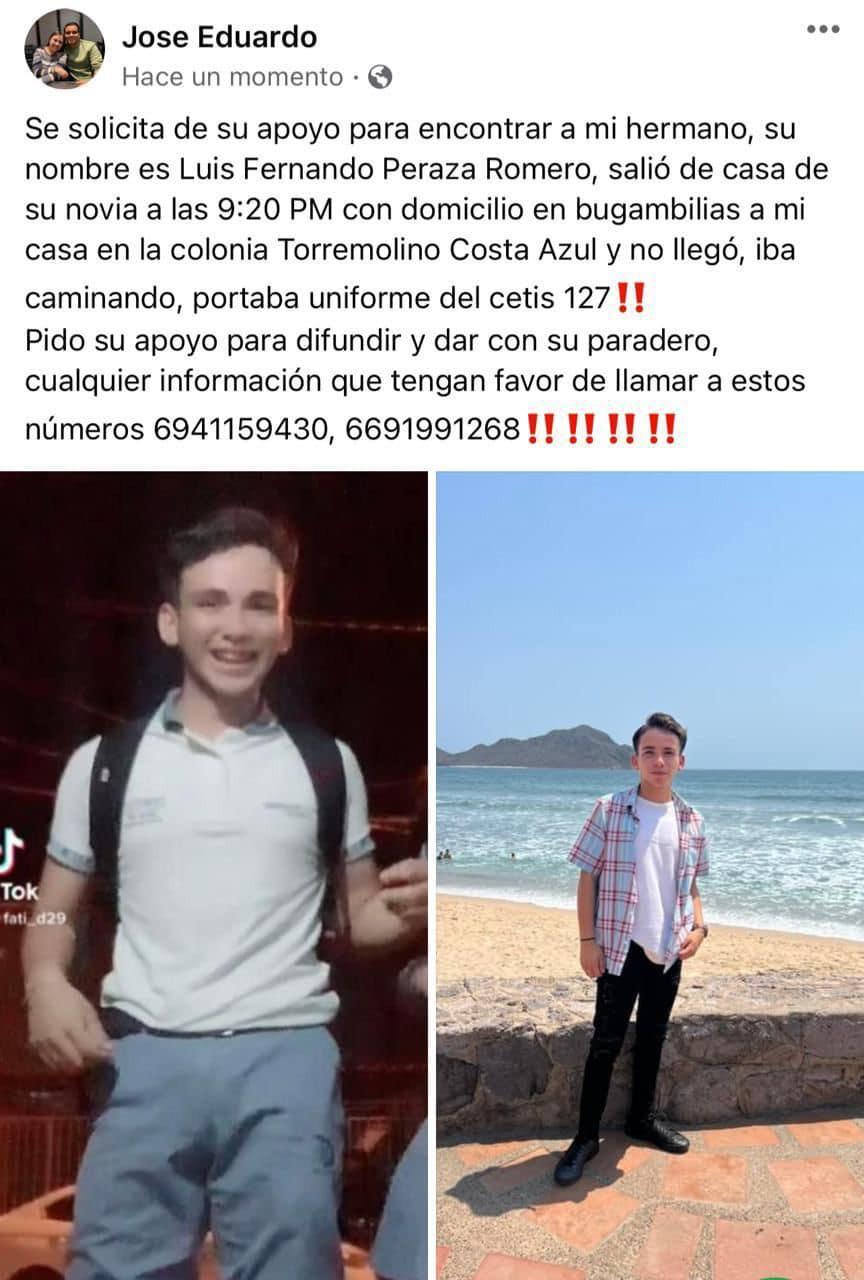 Familiares del alumno del CETis 127, Luis Fernando Peraza Romero, reportaron su desaparición en este puerto la noche del miércoles.