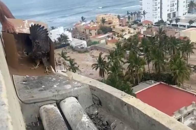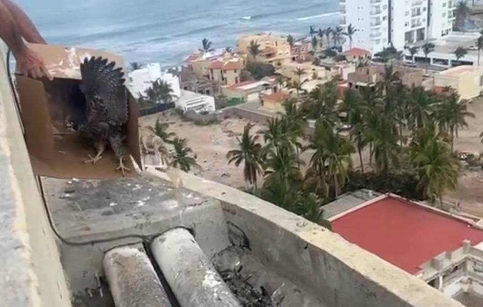 Con la ayuda de un biólogo, los trabajadores de un hotel ubicado en la zona de Cerritos, en Mazatlán, salvaron la vida de la cría de un halcón peregrino.