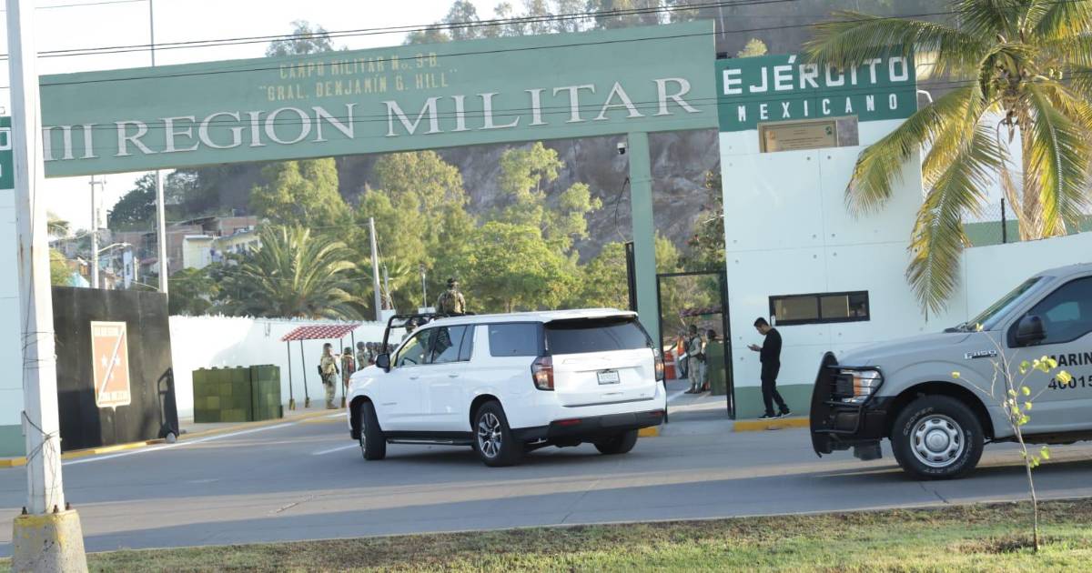 Fue cerca de las 9:21 horas cuando ingresó a las instalaciones de la Tercera Región Militar por la puerta ubicada en la avenida Gabriel Leyva, por donde también llegó el Gobernador de Sinaloa, Rubén Rocha Moya.