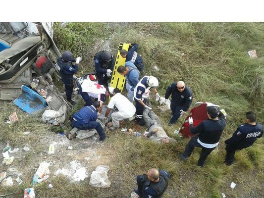 Los restos retorcidos del camión impactado y puesto llantas hacia arriba semejaban un cadáver más, salpicado por los jirones de las despensas que habían recibido los trabajadores que viajaban rumbo a su casa.
