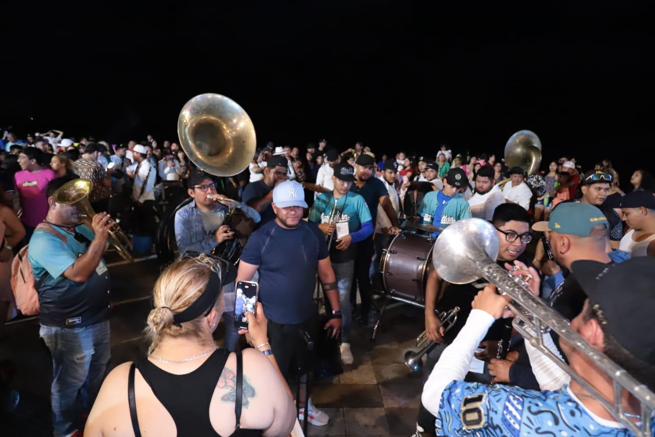 Sin embargo, en punto de las 20:00 horas el área se convirtió en en una total fiesta, al momento en que distintas agrupaciones de música banda hacieron sonar sus instrumentos para amenizar la velada.