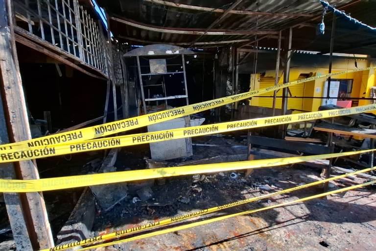 Entre un fuerte olor a quemado y las marcas de la devastación de las víctimas en la calle, el establecimiento muestra restos de la pequeña cocina, así como muebles consumidos por las llamas, además de la carreta de acero inoxidable que apenas resistió el incendio, algo que no pasó con las láminas del techo.