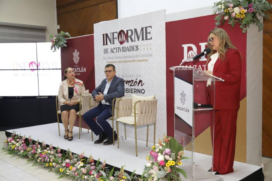 Con la voz entrecortada por la emoción, la presidenta del Sistema DIF Municipal, María Teresa Apodaca de González, entregó este miércoles su Informe de Actividades 2023-2024 al Alcalde, a los integrantes de la Junta Directiva de dicha paramunicipal y al cuerpo de regidores del Ayuntamiento de Mazatlán.