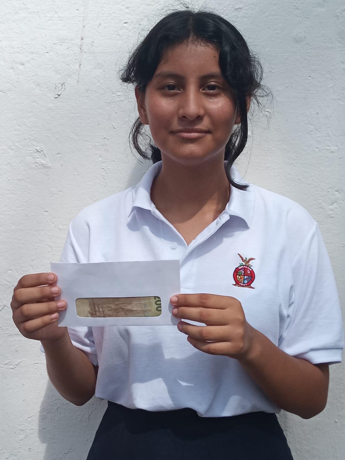 Guadalupe Bata, madre de Eimy, señaló que la beca es un gran beneficio que le va ayudar a comprar parte de los útiles escolares que le faltaban para este ciclo escolar 2023-2024.