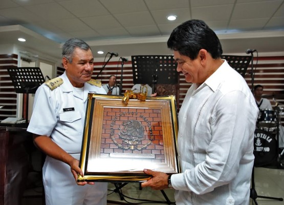 MAZATLÁN._ En una reunión a la que no fueron invitados los medios de comunicación, el Gobernador Mario López Valdez recibió este día un reconocimiento por parte de la IV Zona Naval, que comanda el Vicealmirante DEM Francisco Limas López.