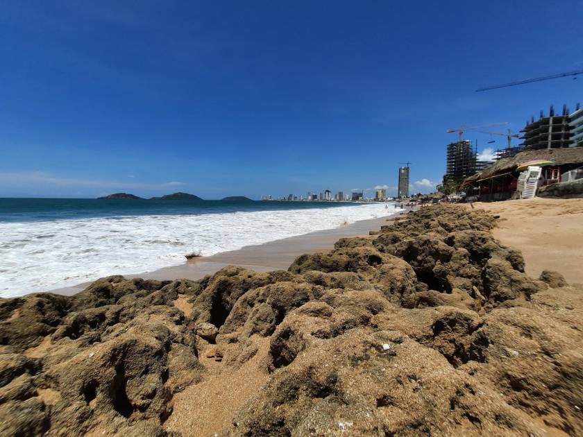 En un recorrido realizado por Noroeste se observó que estos fenómenos estaban presentes desde la playa del Monumento al Pescador hasta el Monumento a la Pulmonía, pues la marea alta provocó que las rocas y cimientos de las palapas quedaran al descubierto.