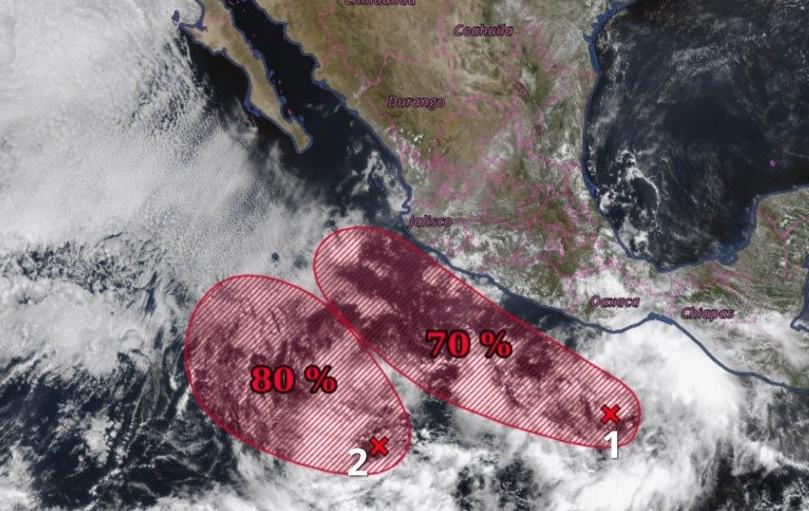 Esperan formación de dos ciclones tropicales en el Pacífico para este fin de semana