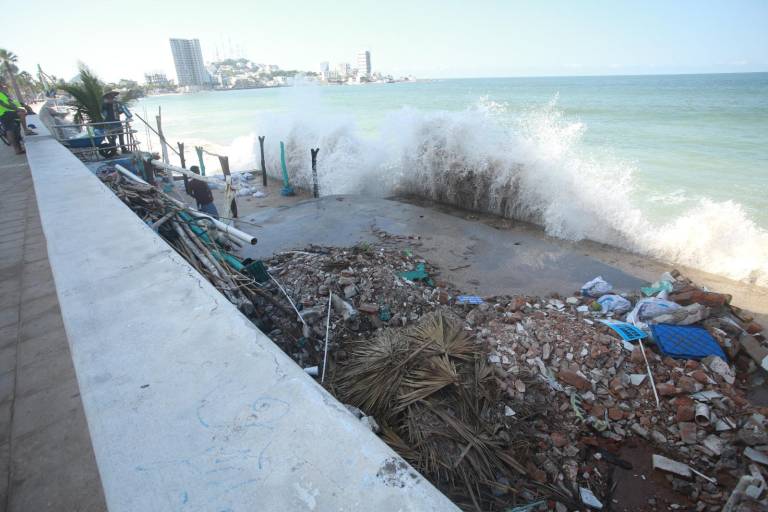 “Además hay un alto grado de erosión en las playas de Mazatlán, con pérdidas de hasta 4.7 metros por año en algunas zonas, incrementando su vulnerabilidad al fuerte oleaje”.