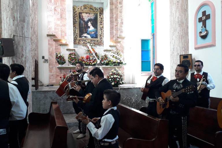“Pero la Iglesia la elevó pronto a los altares y la declaró patrona de los músicos y en todos los lugares donde hay una imagen de ella se le venera, aquí en Mazatlán de manera especial los músicos suelen recurrir a la iglesia de Cristo Rey que tiene ahí una imagen en la parte lateral del altar mayor y ahí pues le rinden un momento de música, una gratitud, se encomiendan a ella para sus familias y sus trabajos”.