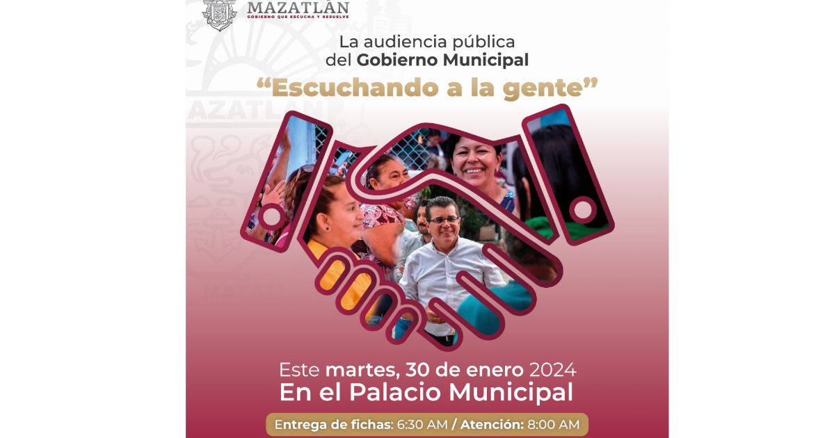 MAZATLÁN._ Este martes 30 de enero se reanudarán las audiencias públicas “Escuchando a la Gente” del Gobierno Municipal de Mazatlán.