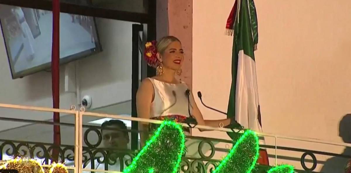 “Mexicanas y mexicanos, mazatlecas y mazatlecos, ¡Vivan las heroínas y héroes que nos dieron patria y libertad!, ¡Viva Miguel Hidalgo y Costilla!, ¡Viva Josefa Ortiz de Domínguez!, ¡Viva Leona Vicario!, ¡Viva Ignacio Allende!, ¡Viva Juan Aldama!, ¡Viva José María Morelos y Pavón!, ¡Viva Vicente Guerrero!, ¡Viva la Independencia Nacional!, ¡Viva la justicia!, ¡Viva la paz!, ¡Vivan las mujeres!, ¡Viva Mazatlán!, ¡Viva México!, ¡Viva México!, ¡Viva México!”, exclamó la Presidenta Palacios Domínguez desde el balcón del Palacio Municipal.