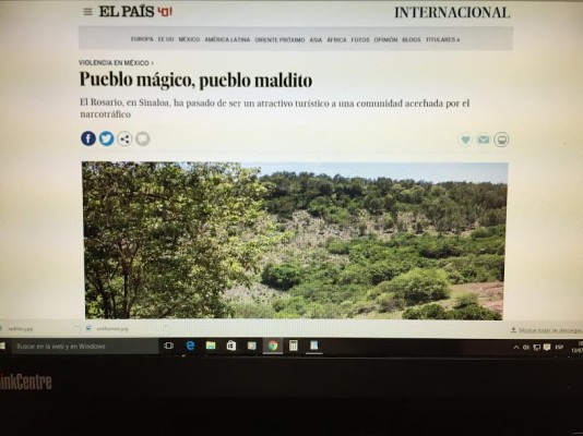 En su edición de hoy, El País inicia con la historia de los siete leñadores de la comunidad El Palmarito que fueron mutilados y decapitados en la zona de Cacalotán, y de ahí cuenta cómo en 2012, gracias a su riqueza cultural, Rosario fue denominado Pueblo Mágico por la Secretaría de Turismo, para darle un valor agregado y convertirlo en referente turístico de Sinaloa.