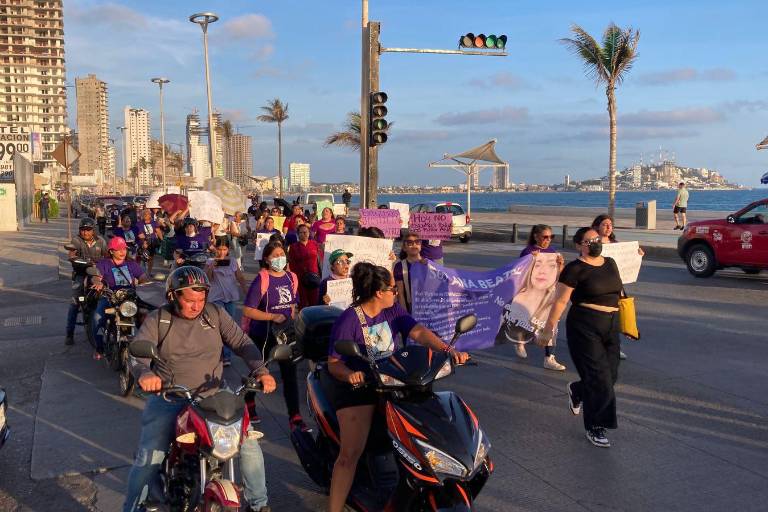 MAZATLÁN._ Familiares, amigos e integrantes de un colectivo feminista realizaron la tarde de este lunes una manifestación frente a la Unidad Administrativa del Gobierno del Estado en Mazatlán y un bloqueo en la Avenida del Mar para exigir justicia para Ana Beatriz y que su muerte sea investigada como feminicidio cometido por su esposo y no por accidente de tránsito.