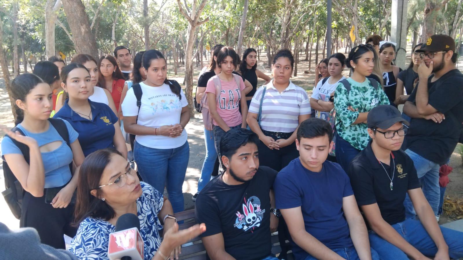 Alumnos y docentes de la Facultad de Turismo de la Universidad Autónoma de Sinaloa se manifestaron la mañana de este miércoles en las inmediaciones del Parque Central Mazatlán, para reclamar la elección democrática de su próximo director.