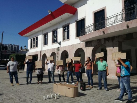 MAZATLÁN._ Hartos de la inseguridad, mazatlecos familiares de "El Negro", un marisquero famoso asesinado ayer en el puerto, se manifiestan en la explanada del Palacio Municipal.