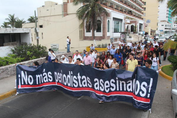 La manifestación en el puerto se realizó de manera simultánea con periodistas de Guamúchil y Culiacán y Escuinapa, fueron voces de un gremio herido.
