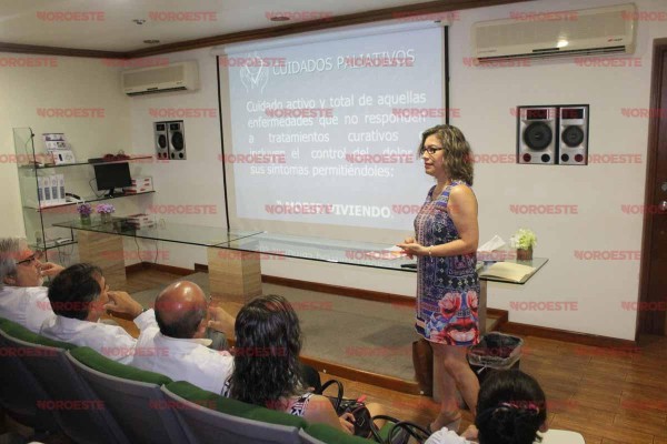 La especialista en salud mental presentó la conferencia “Cuidados Paliativos en el enfermo terminal”, en el auditorio “José Zorrilla” de la Clínica del Mar, como parte de las reuniones mensuales que realiza la institución para informar sobre temas de interés político, social, cultural y de salud.