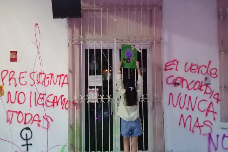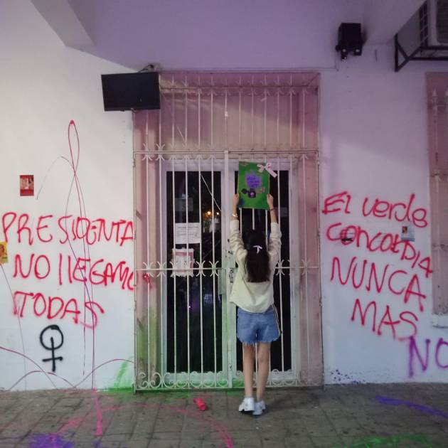 Mensajes como “Fuera Rocha”, “No impunidad”, “No llegamos todas” y “El Verde nunca más”, fueron algunas de las frases que plasmaron las integrantes del colectivo en las paredes principales del edificio, en las que muestran su enojo contra las autoridades de Gobierno.