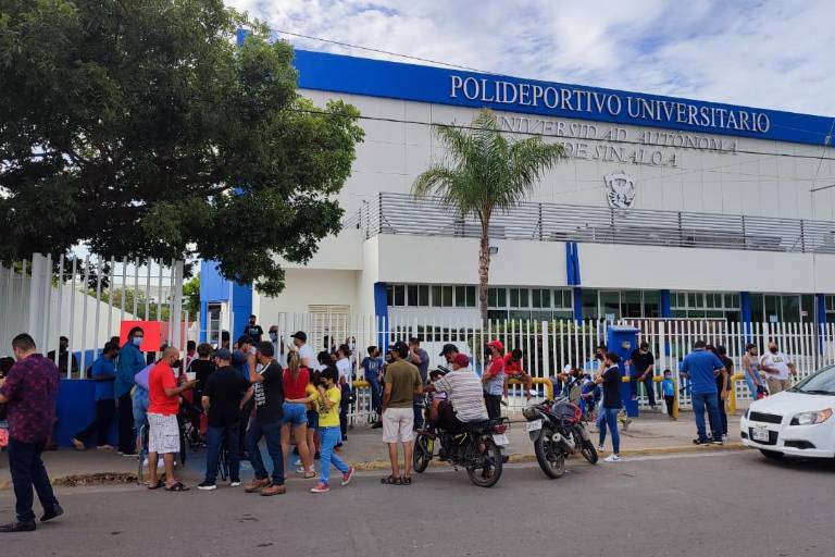 Para las 8:00 horas la fila llegaba hasta la Unidad de Servicios Administrativos, es decir, doblaba la manzana donde está ubicado el Polideportivo de la UAS y las universidades de la Casa Rosalina.