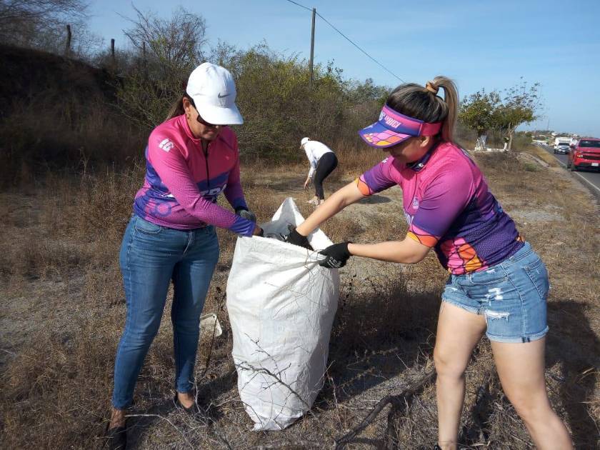 Fridas en Bici Sinaloa limpian carretera entre El Habal y Puerta de Canoas, en Mazatlán