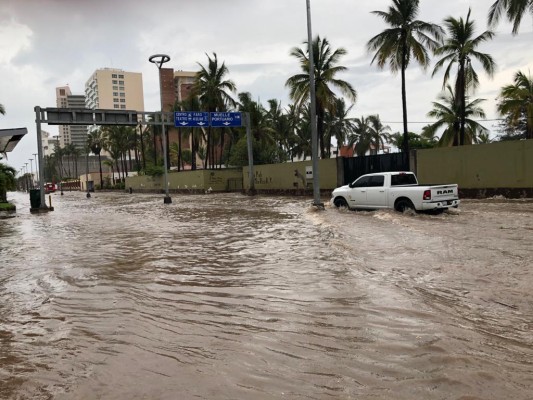 MAZATLÁN._ Solo una de cuatro bombas funcionan para extraer el agua de lluvia en la Avenida Camarón Sábalo, frente a Conapesca y eso fue lo que generó nuevamente que se presentaran inundaciones en esa zona