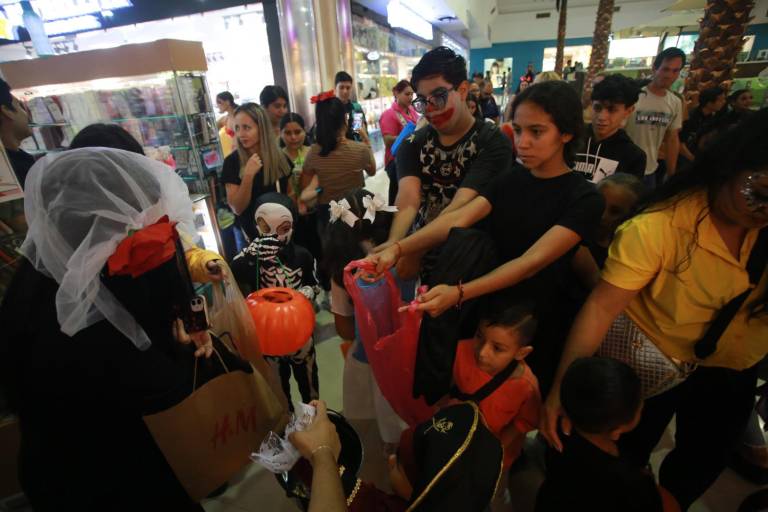 Familias que acompañan a sus hijos, grupos de adolescentes y jóvenes o hasta en solitario piden Halloween en los pasillos de la plaza comercial y en las letras de Mazatlán, en el malecón