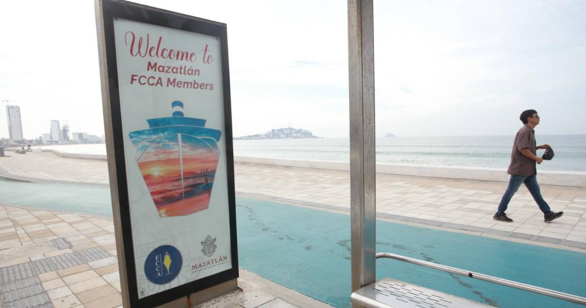 Las pantallas informativas que se encuentran a lo largo de la zona turística, principalmente en las paradas de los camiones tienen un mensaje de “Welcome to Mazatlán FCCA members”, para recibir a los visitantes.