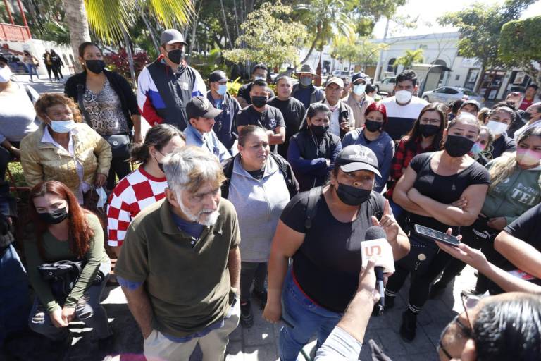 Decenas de trabajadores eventuales de Servicios Públicos se manifestaron la mañana del sábado para exigir que no los den de baja como trabajadores del Ayuntamiento de Mazatlán y los den de alta en una empresa privada, además que les respeten sus derechos laborales y antigüedad.